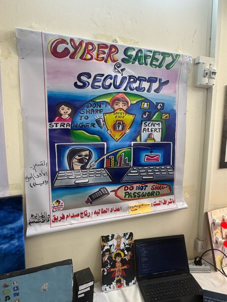 ومن أبرز الابتكارات المعروضة فيه والتي يقوم الطلاب حماية المواقع في قسم الامن السيبراني وعرض خرائط قسم الديكور ولوحات فنية لقسم الفنون والطبلات الالكترونية للأجهزة الطبية